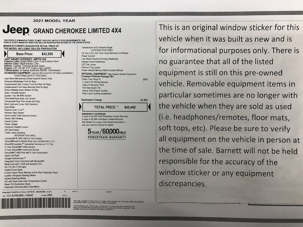Listed selling price includes a $1000 Barnett Trade Bonus. Trade-in vehicles no more than 10 years old and 100K miles or less with a clean title automatically qualify. Trade-in vehicles outside these parameters need to be discussed and reviewed in person with the dealership to determine qualification. "The vehicle equipment list is auto generated and errors in listed equipment may occur. Please be sure to verify all equipment on the vehicle in person at time of sale as this list may not be 100% accurate. Barnett will not be held responsible for the accuracy of this list."