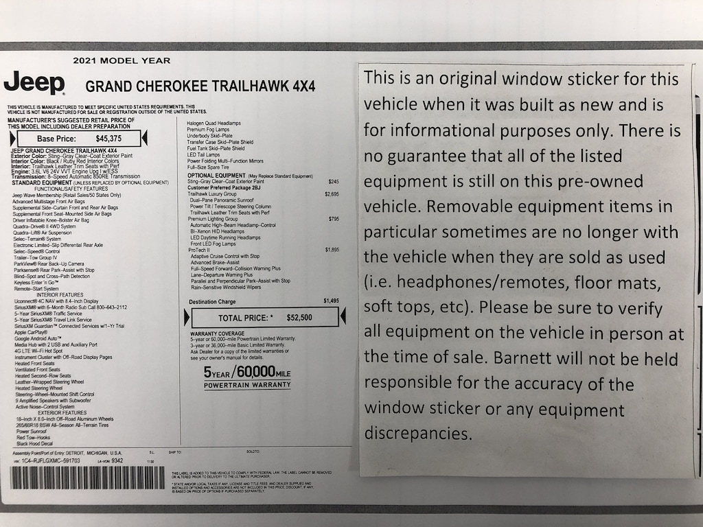 Pre-Owned 2021 JeepGrand Cherokee Trailhawk 4WD